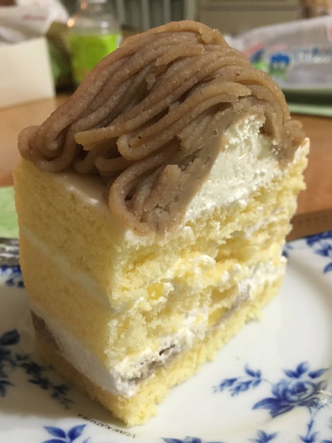 秋だし何か栗のスイーツを。ということで、新宿高島屋でモンブラン風のショートケーキを買ってきました。